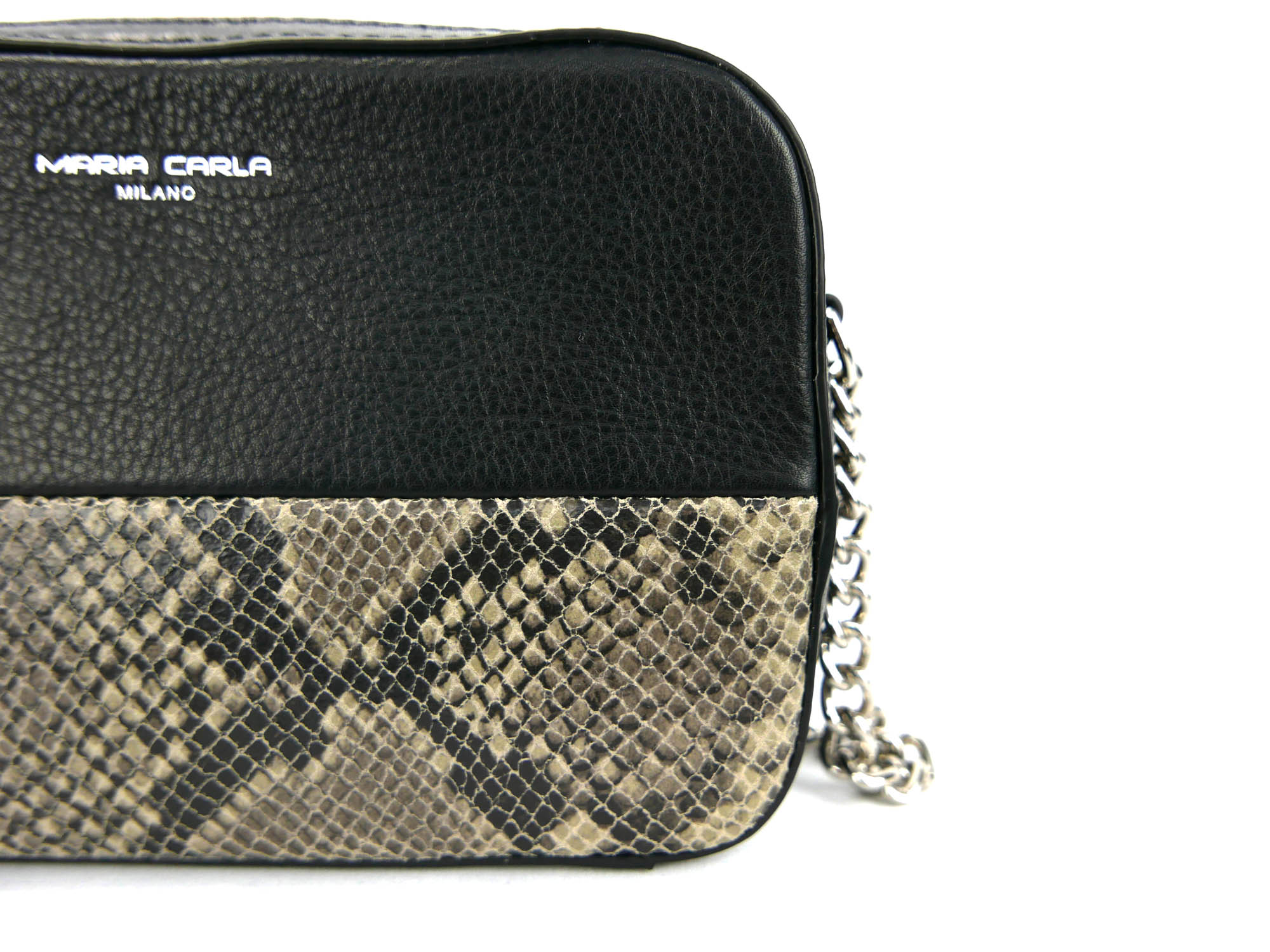 Grained leather finish combined with snake print