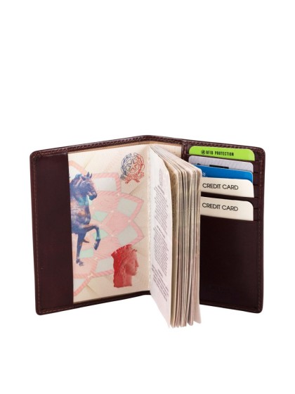 Vegetable tanned leather passport holder with 5 slots for cardsRFID protection..